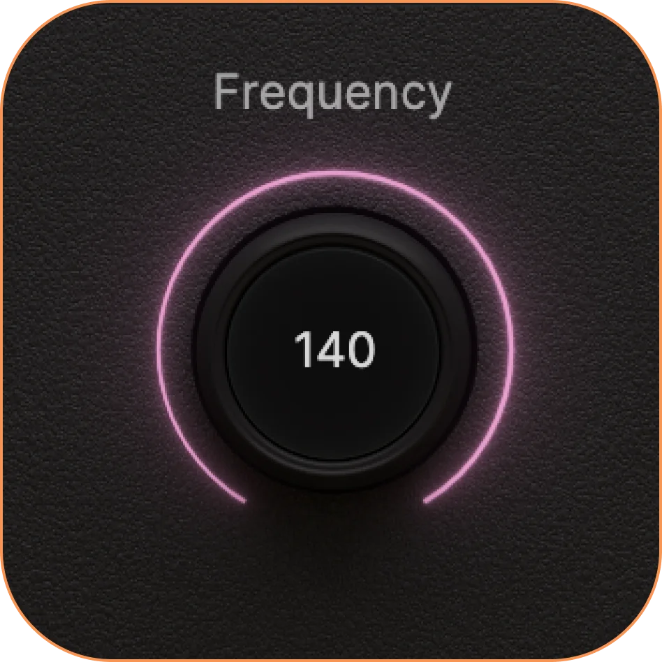 The Frequency knob sets the frequency range that will be used to generate sub-harmonics and influence overall tone processing.