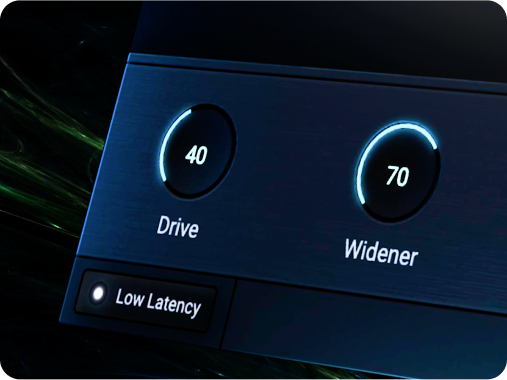 The plugin’s built-in filters and included Drive and Widener controls give you a quick, easy way to add color and dimension to your affected sound.