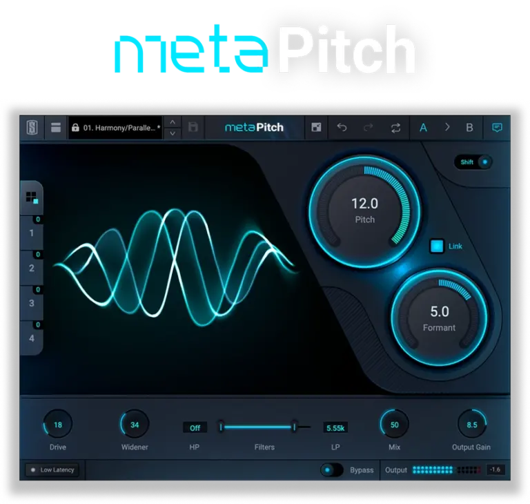 MetaPitch’s Low Latency Mode greatly reduces the delay you might experience with other pitch shifting plugins when recording or monitoring live.
